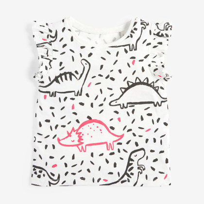 【18M-9Y】Girls Casual Dinosaur Full Print Sleeveless Cotton T-shirt