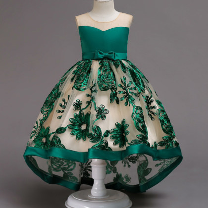 【18M-9Y】Stereoscopic Flower Embroidered Self Tie Bowknot Self Tie Princess Dress
