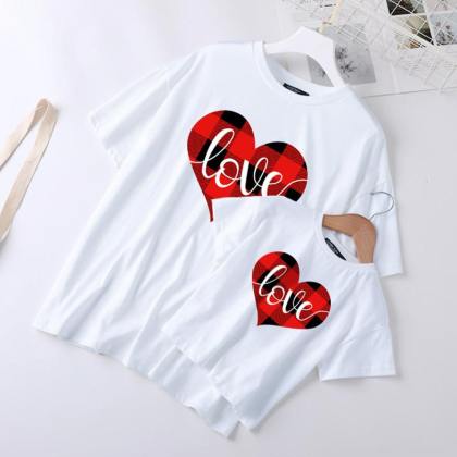 Sissifun Casual Letter Print Round Neck Short Sleeve Mom Girl Matching T-shirt