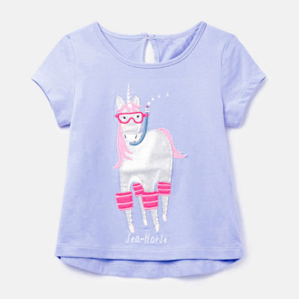【18M-9Y】Girls Cute Casual Cartoon Unicorn Print Cotton T-shirt