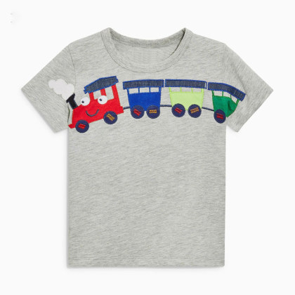【18M-9Y】Boys Simple Casual Train Print Cotton Short-sleeved T-shirt