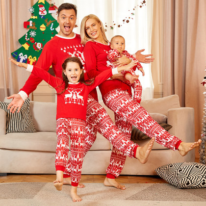Fashion-parent-son suit printed round-necked family-friendly home-child suit.