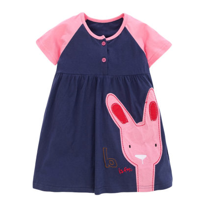 【18M-9Y】Girls Casual Cute Cartoon Pattern Cotton Short-sleeved Dress