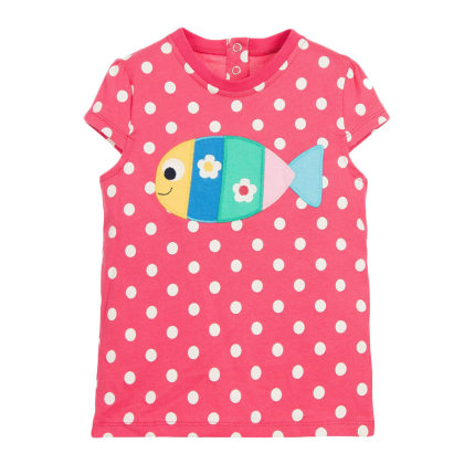 【18M-9Y】Girls Cartoon Fish Polka Dot Print Short Sleeve T-shirt